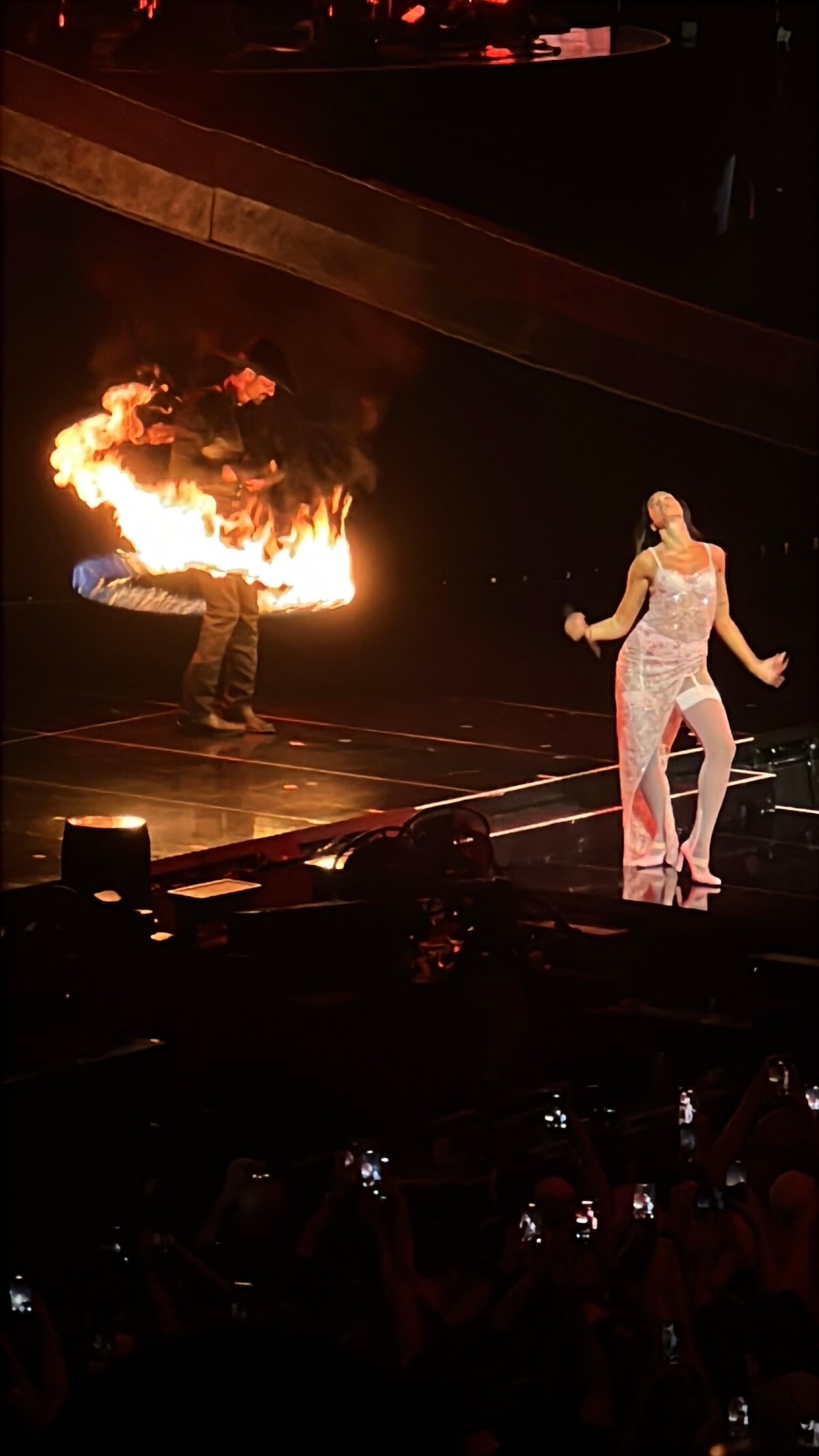 At one point, she leaned fully into Texas pride: rocking a Cowboys jersey, inviting the Dallas Cowboys Cheerleaders on stage for "Physical" and even featuring a lasso-wielding fire performer that sent the crowd into chaos (in the best way). It was theatrical, cheeky and very Dua—high-fashion-meets-hometown-flair.