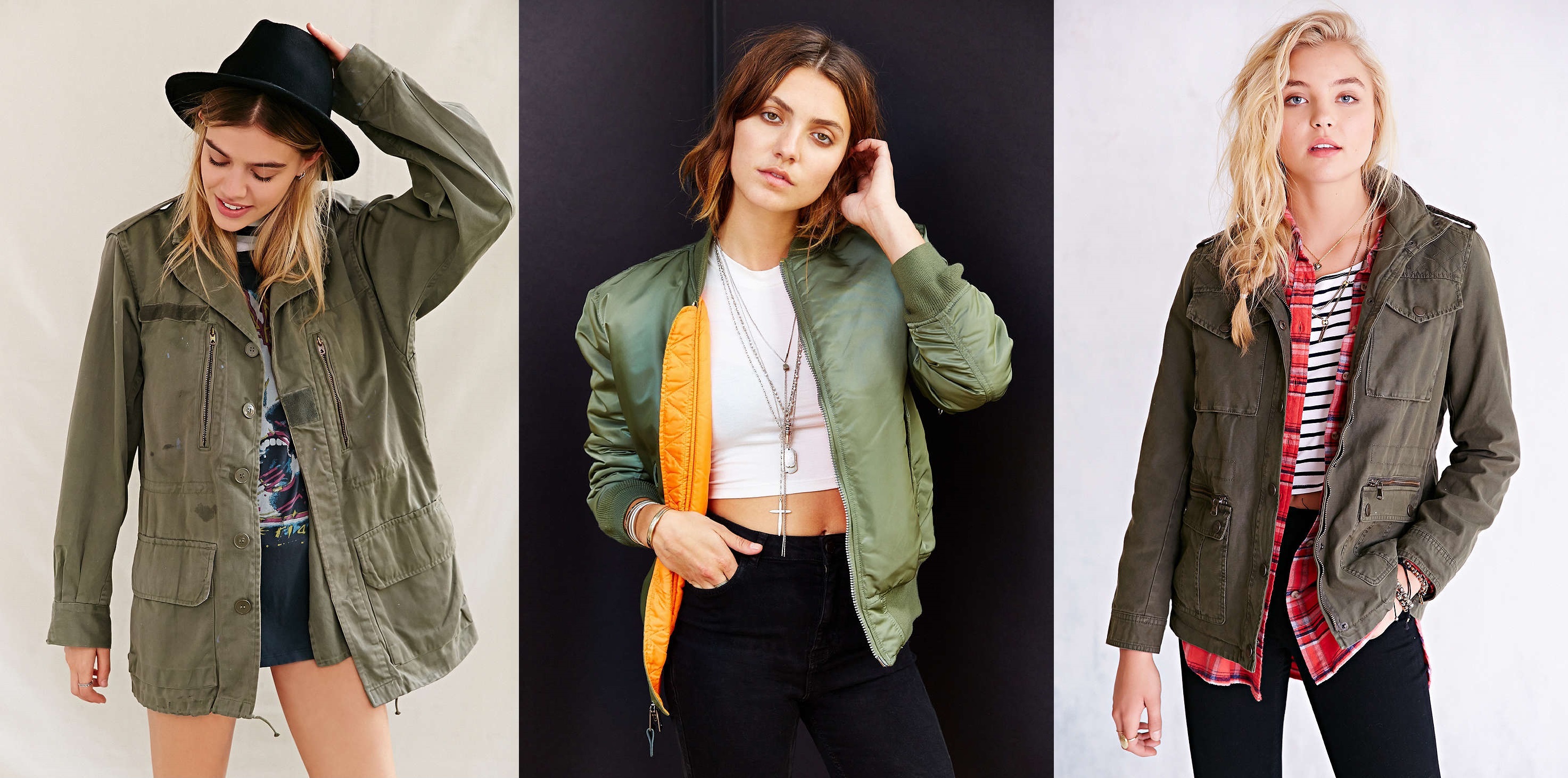 Feeling more casual this fall? You can look totally on point this fall with some army inspirations, like these from Urban Outfitters. Go for the olive drab with a nice, slouchy fitting jacket. They're not only cute, but totally practical. Just look at all those pockets! Too baggy for your taste? Go for a sportier bomber jacket–they'll look great with your favorite pair of skinny jeans!